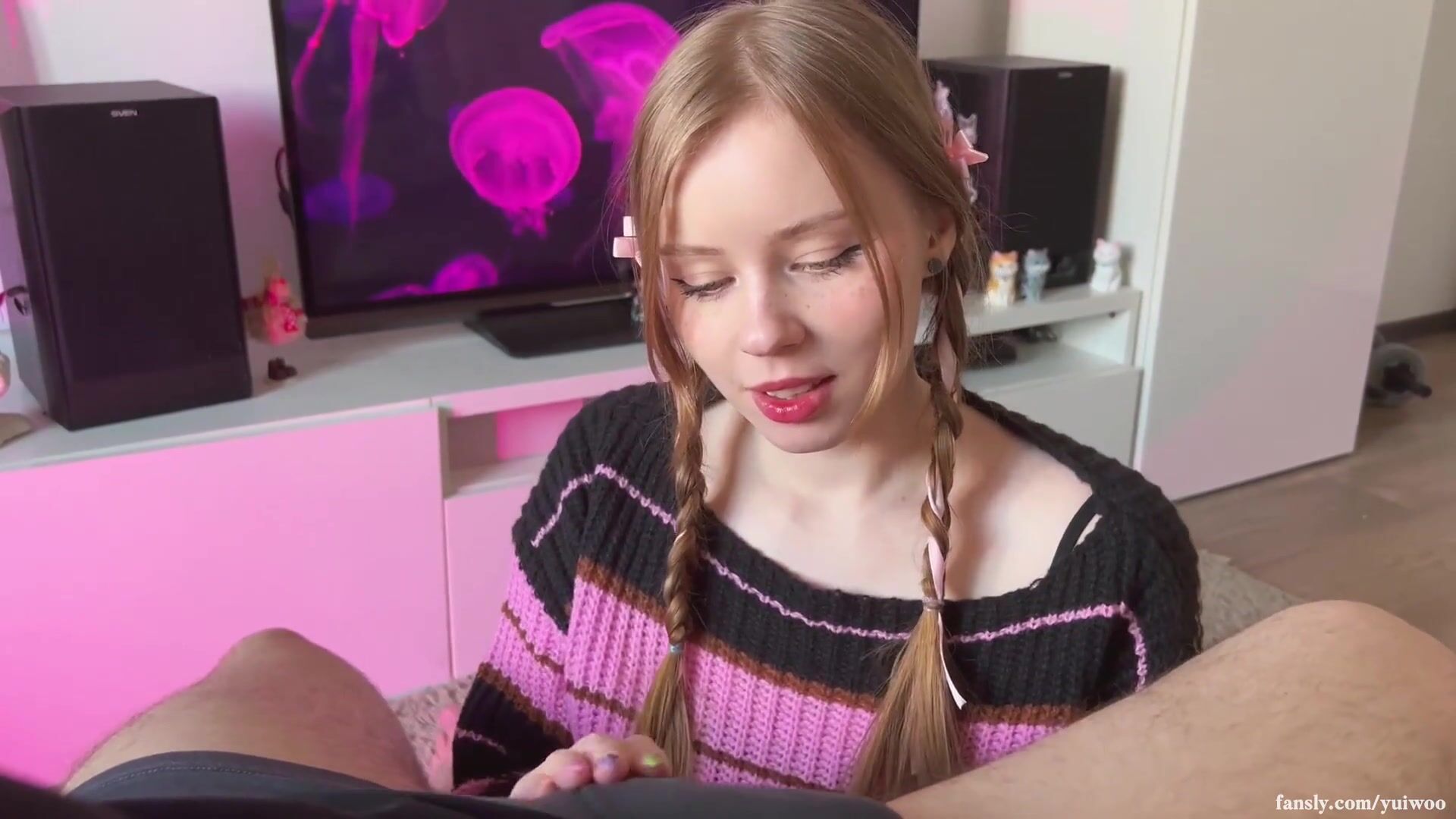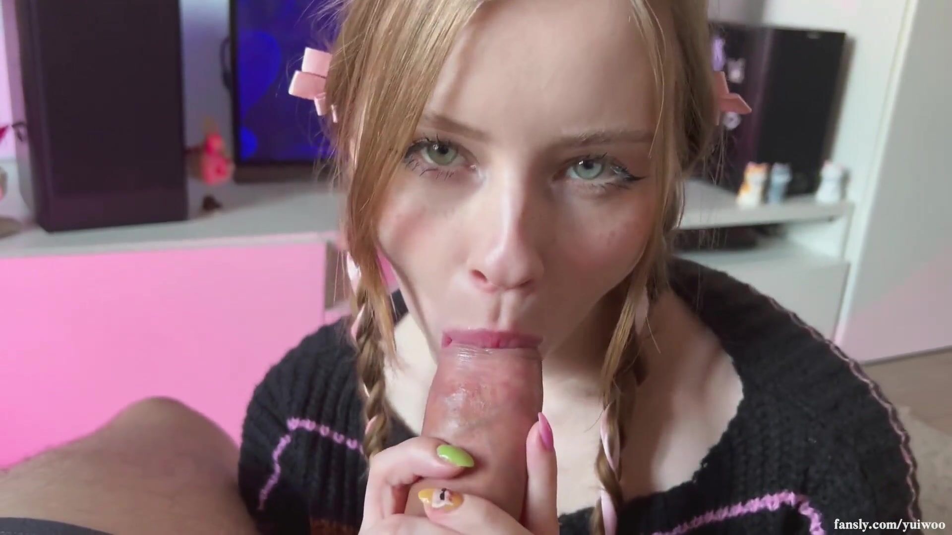 18 years old babe with green eyes giving head with eye contact
