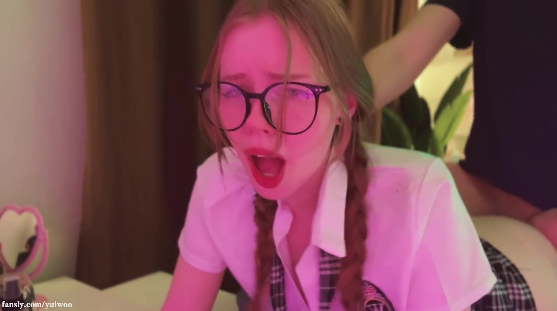Nerdy School Girl Gives Head Swallowing Cum