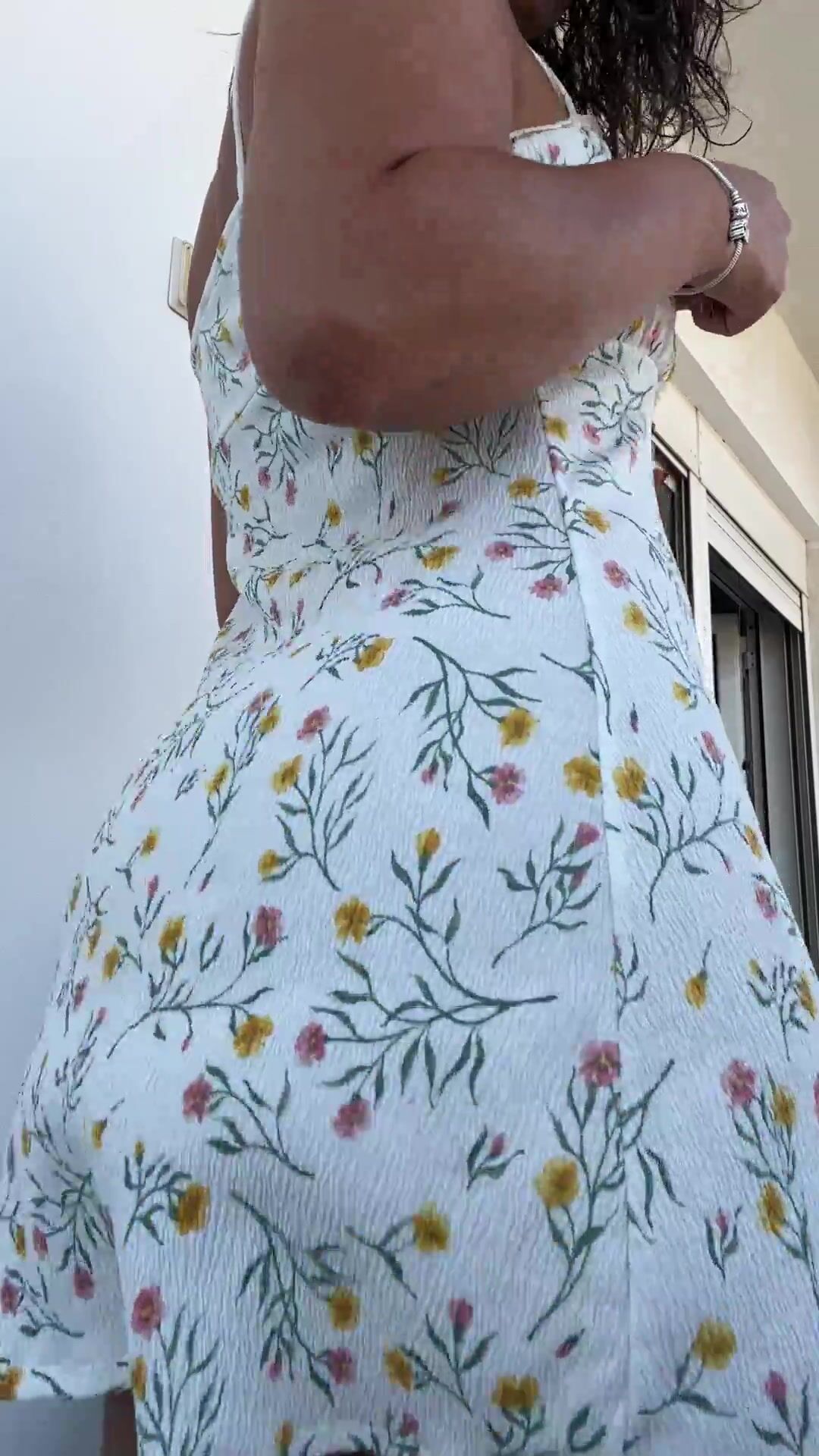 hot wife in her white floral dress getting fresh air outside freeing her butt cheeks