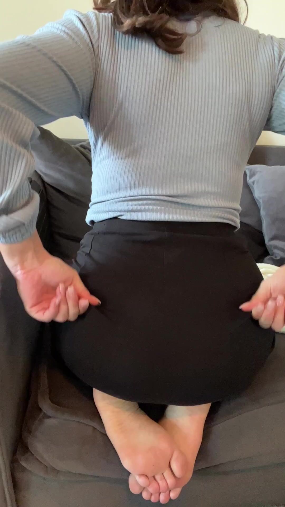 hotwife in her casual outfit flashing her big booty on the couch