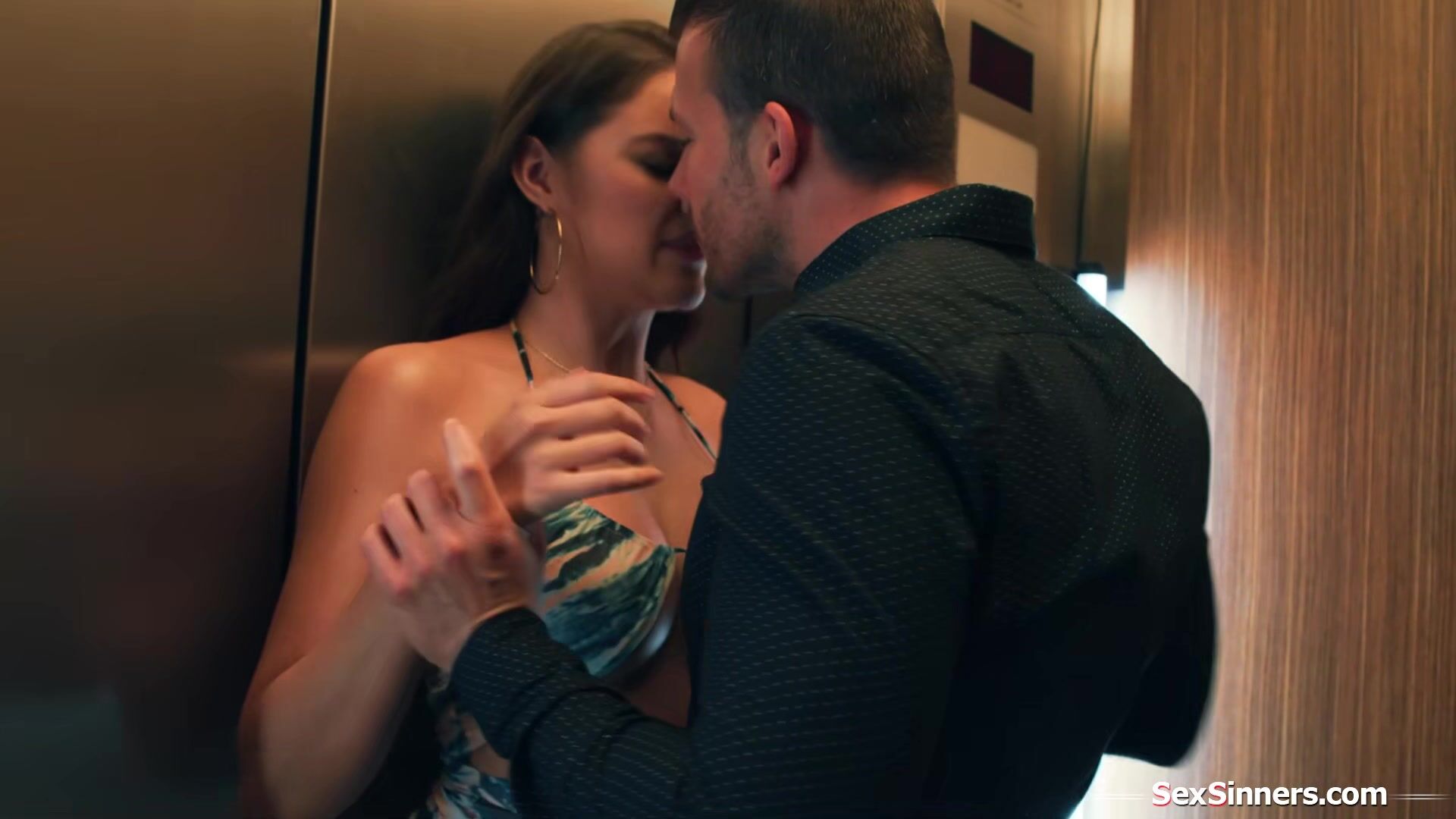 Gizelle Blanco meets both secret dates in the elevator.When one leaves shes pussy licked then the other comes back and shes facefucked by a bbc until shes caught.The brunette confesses she want them both and they take turns fucking the cheating slut