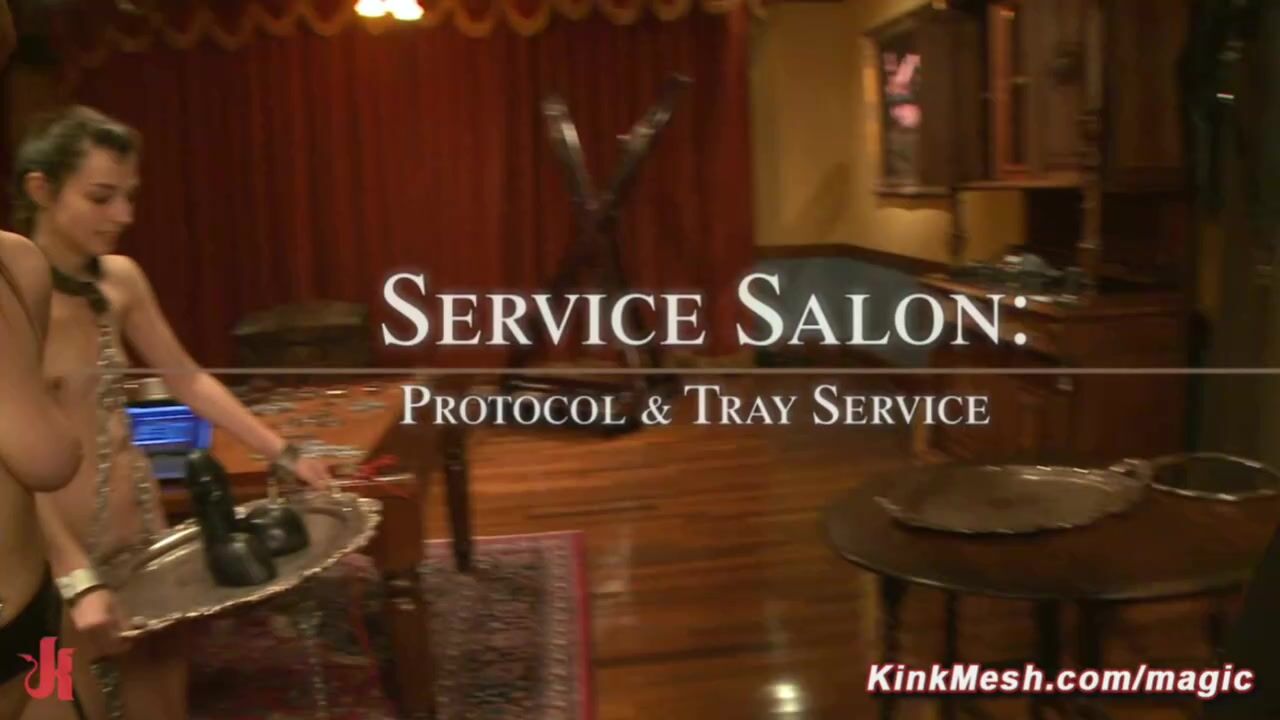 Two slutty slaves Bella Rossi and Kristine Kahill get used like toys at a filthy lounge party. Made to serve trays, stripped naked, tied tight, and punished with whipping and pain. Their holes stretched, their bodies tormented, and fucked rough by James Mogul and Maestro Stefanos until they’re broken and begging.